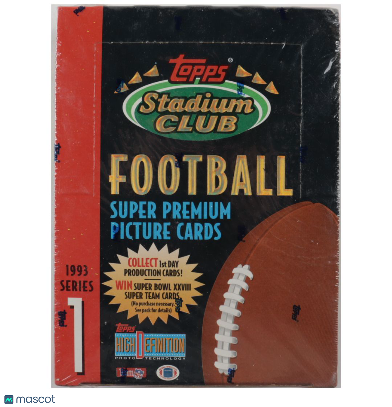 You are purchasing a 1993 Topps Stadium Club Series 1 Football Hobby Box. You will receive the exact item in the photographs. Thank you for looking. Listed With Mascot.