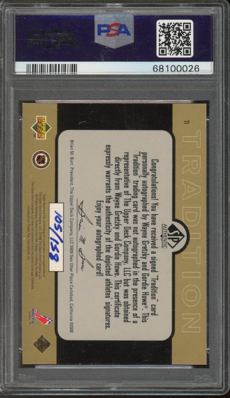 You are purchasing a 1997 SP Authentic Tradition Autographs G. Howe W. Gretzky #T1 PSA. You will receive the exact item in the photographs. Thank you for looking. Listed With Mascot.