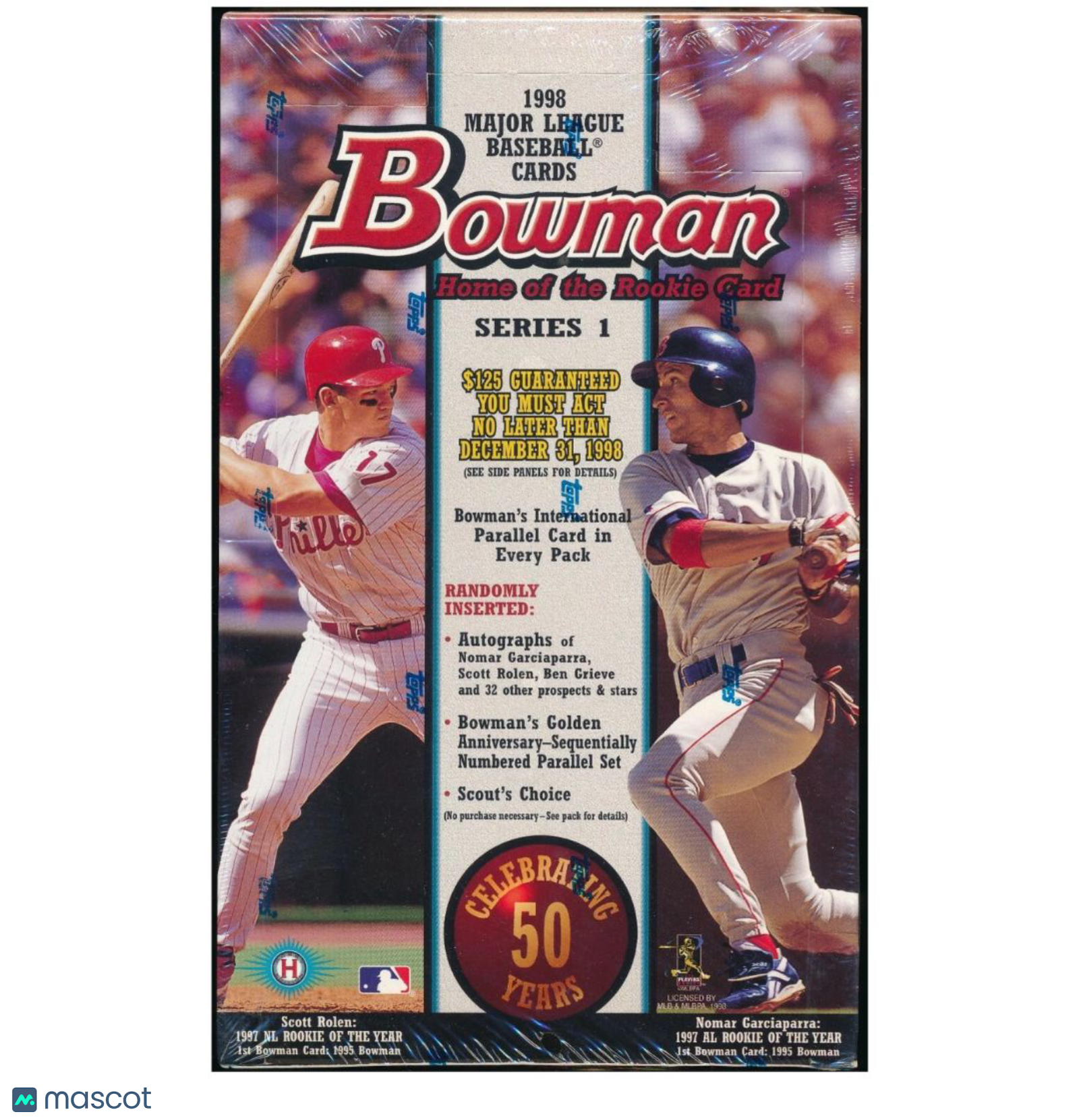 You are purchasing a 1998 Bowman Series 1 Baseball Hobby Box. You will receive the exact item in the photographs. Thank you for looking. Listed With Mascot.