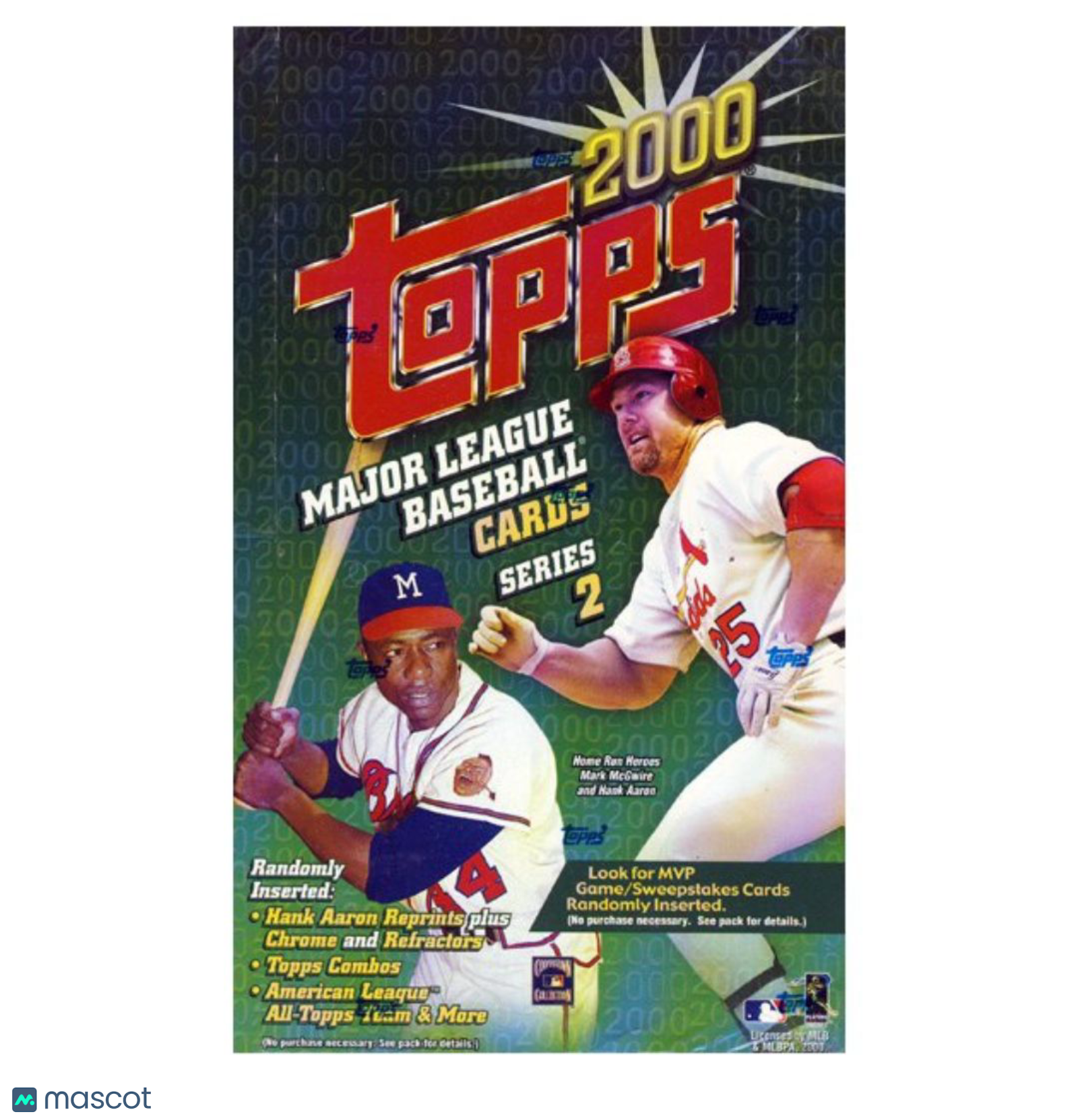 You are purchasing a 2000 Topps Series 2 Baseball Hobby Box. You will receive the exact item in the photographs. Thank you for looking. Listed With Mascot.