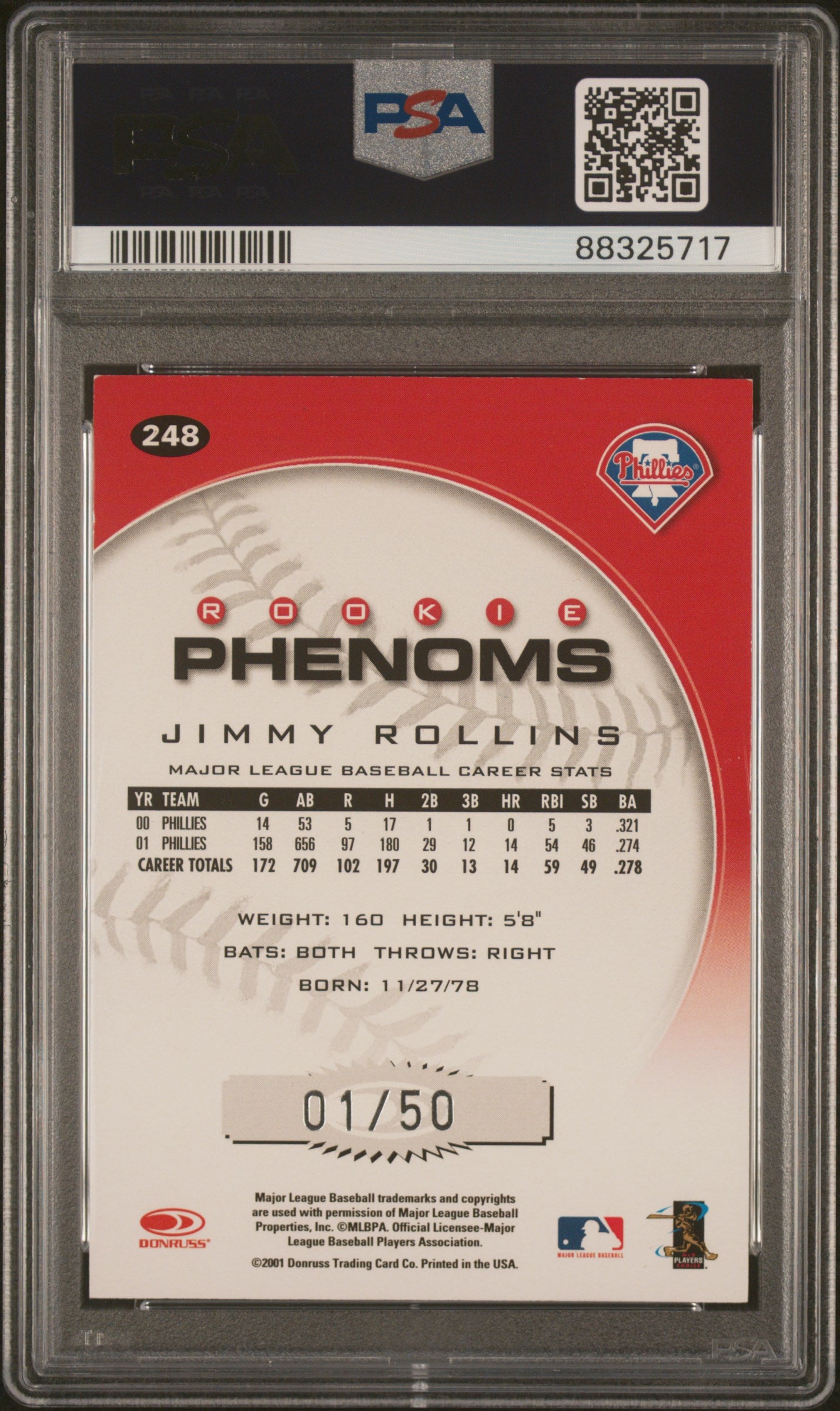 2001 Donruss Jimmy Rollins First Class Rookie 1/50 PSA 7 POP 1