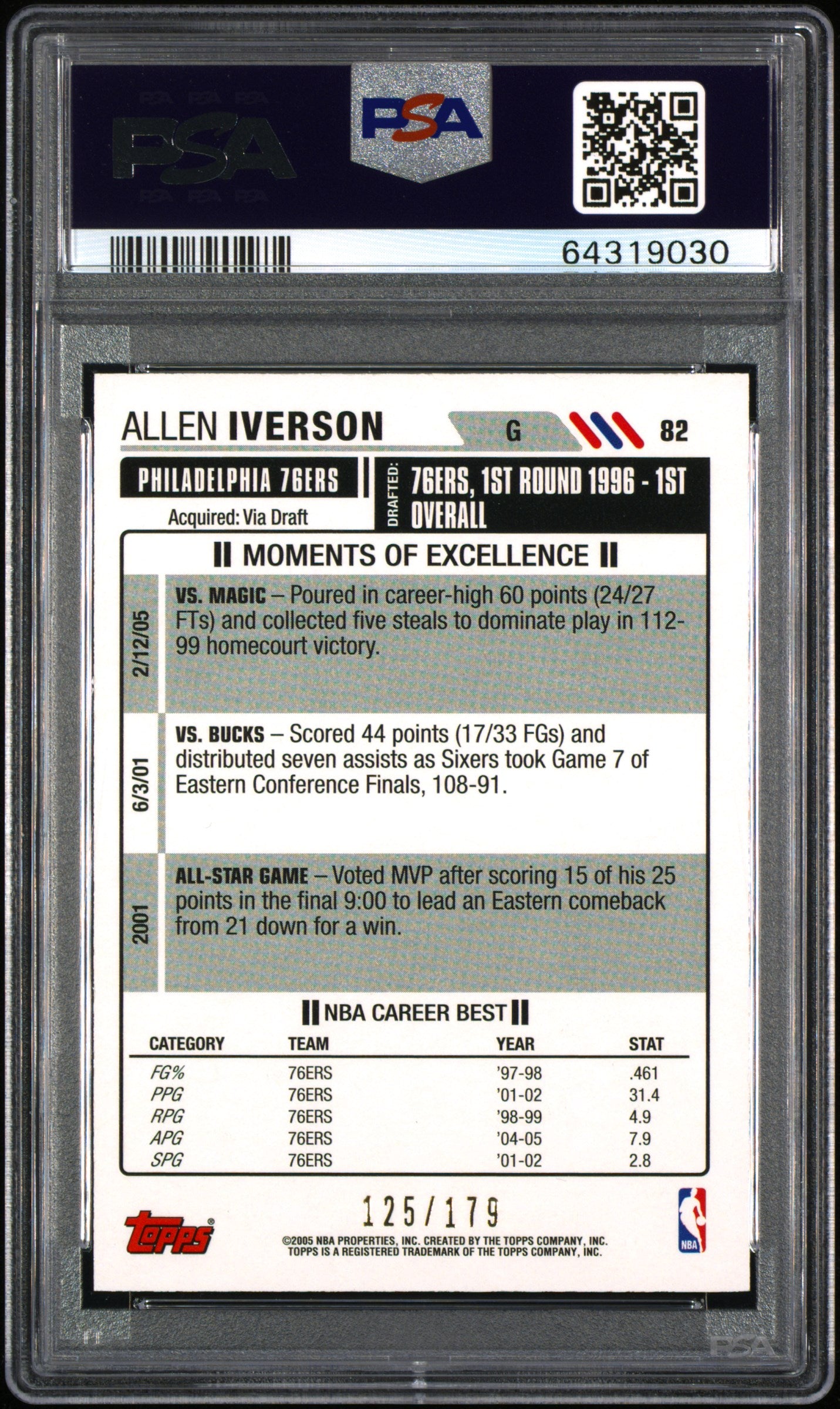 2005-06 Topps Big Game Allen Iverson /179 PSA 9