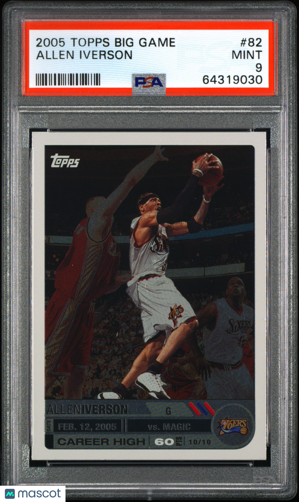 You are purchasing a 2005 Topps Big Game Allen Iverson #82 10/10 PSA. You will receive the exact item in the photographs. Thank you for looking. Listed With Mascot.