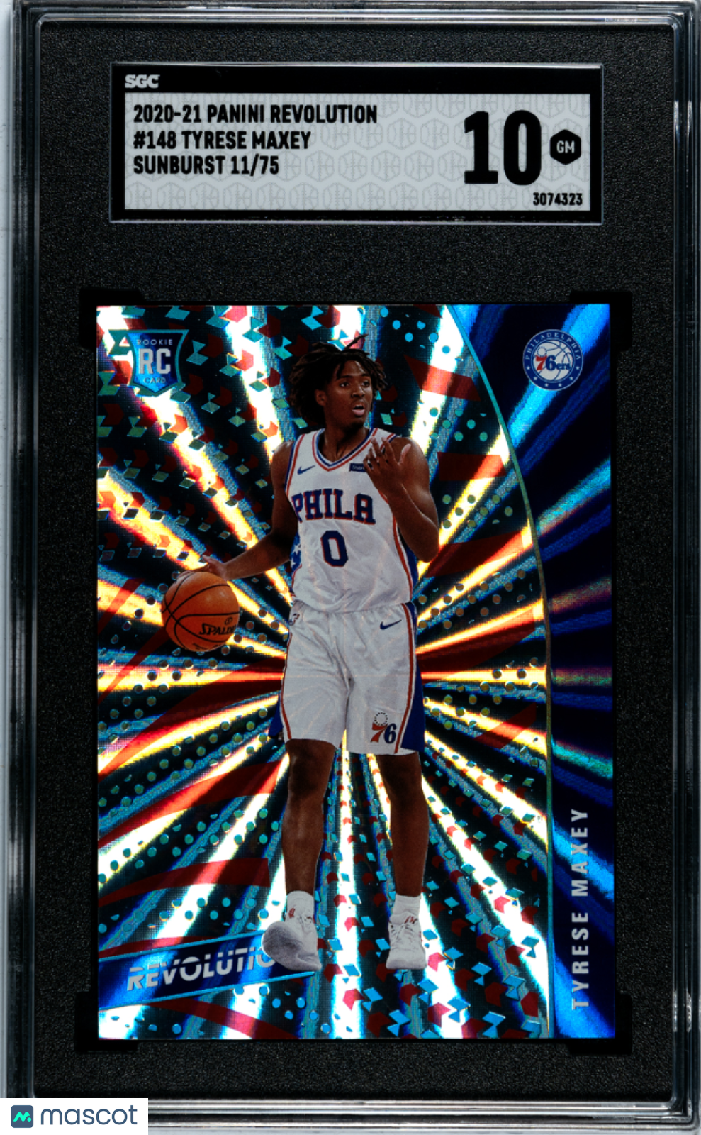 2020-21 Revolution Tyrese Maxey Sunburst Rookie /75 SGC 10