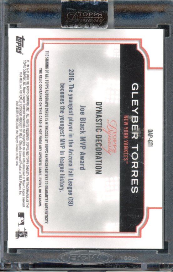 2020 Topps Dynasty Gleyber Torres Patch Auto /5 GU