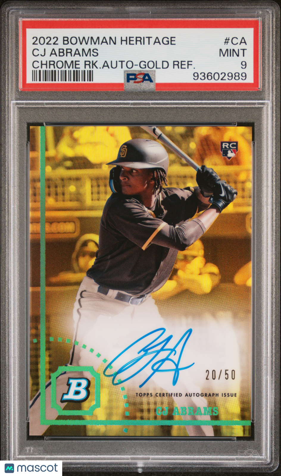 2022 Bowman Heritage CJ Abrams Gold Rookie Auto /50 PSA 9