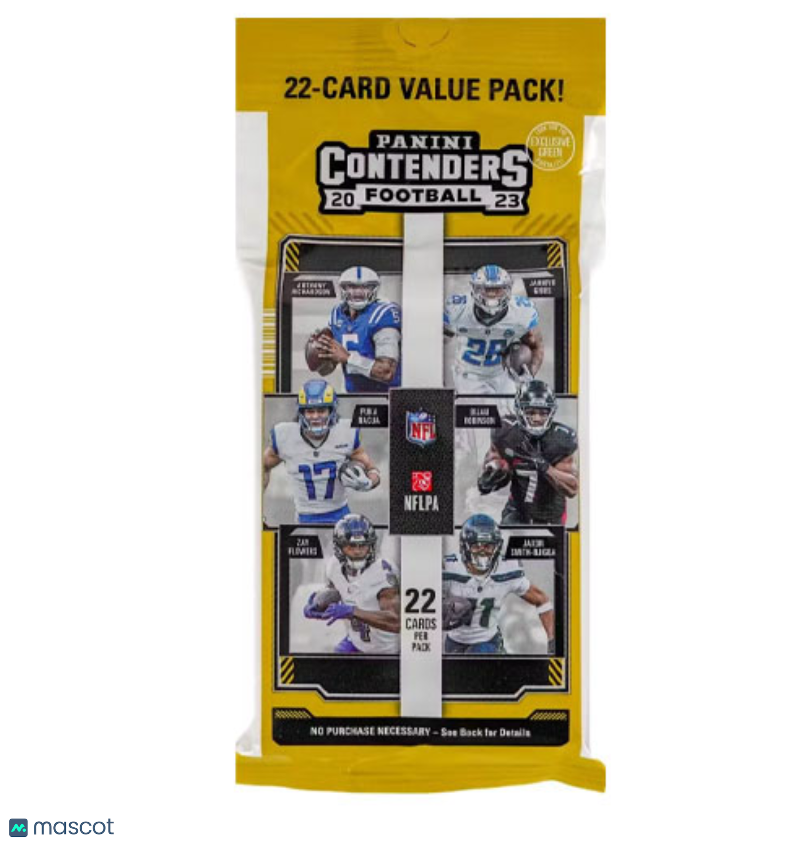 You are purchasing a 2023 Panini Contenders Football Fat Pack. You will receive the exact item in the photographs. Thank you for looking. Listed With Mascot.