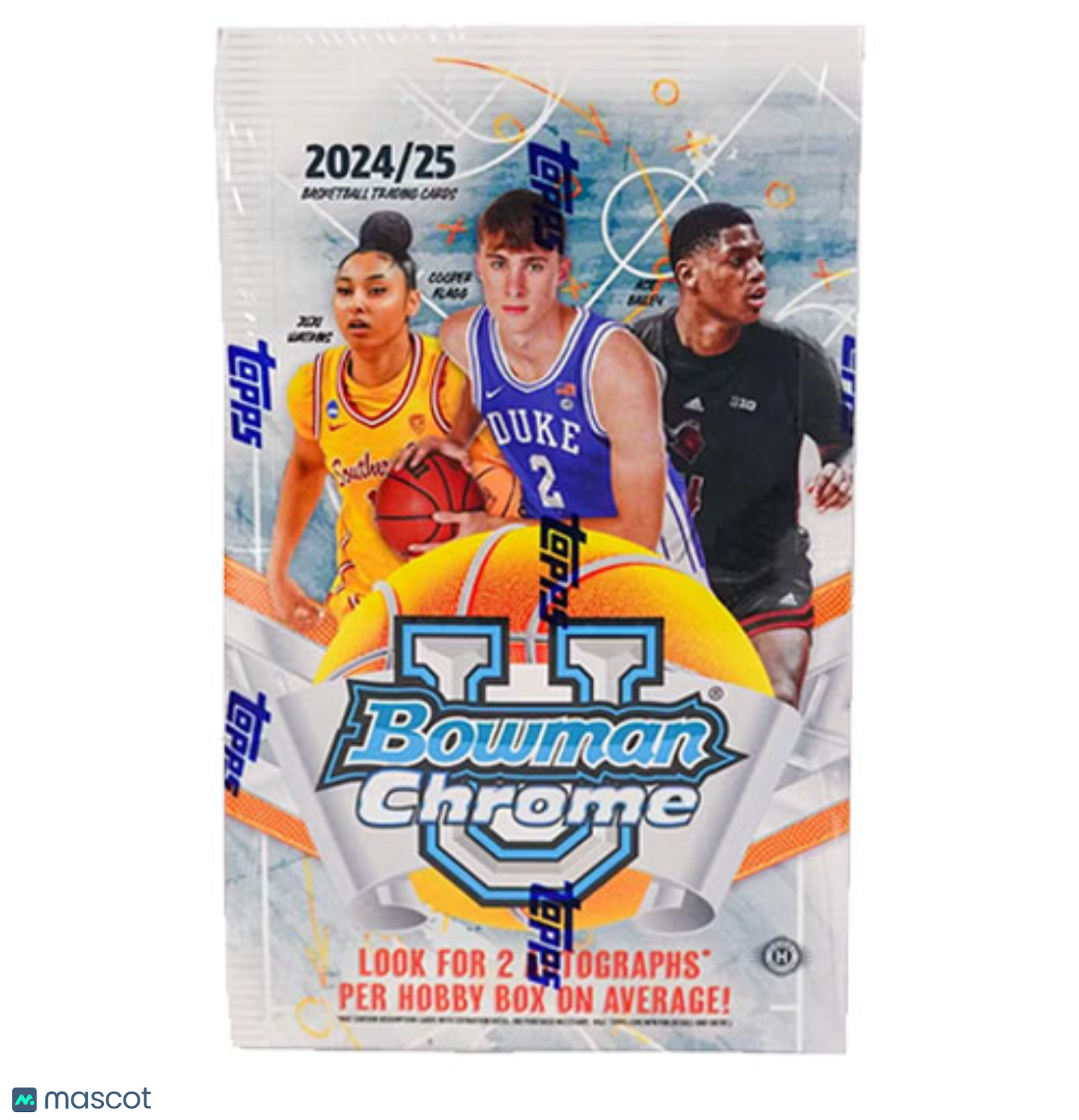 You are purchasing a 2024/25 Bowman Chrome University Basketball Hobby Box. You will receive the exact item in the photographs. Thank you for looking. Listed With Mascot.