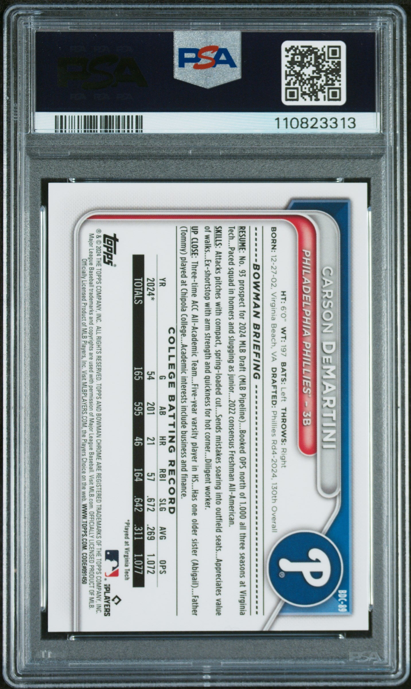 2024 Bowman Chrome Carson Demartini /25 PSA 10