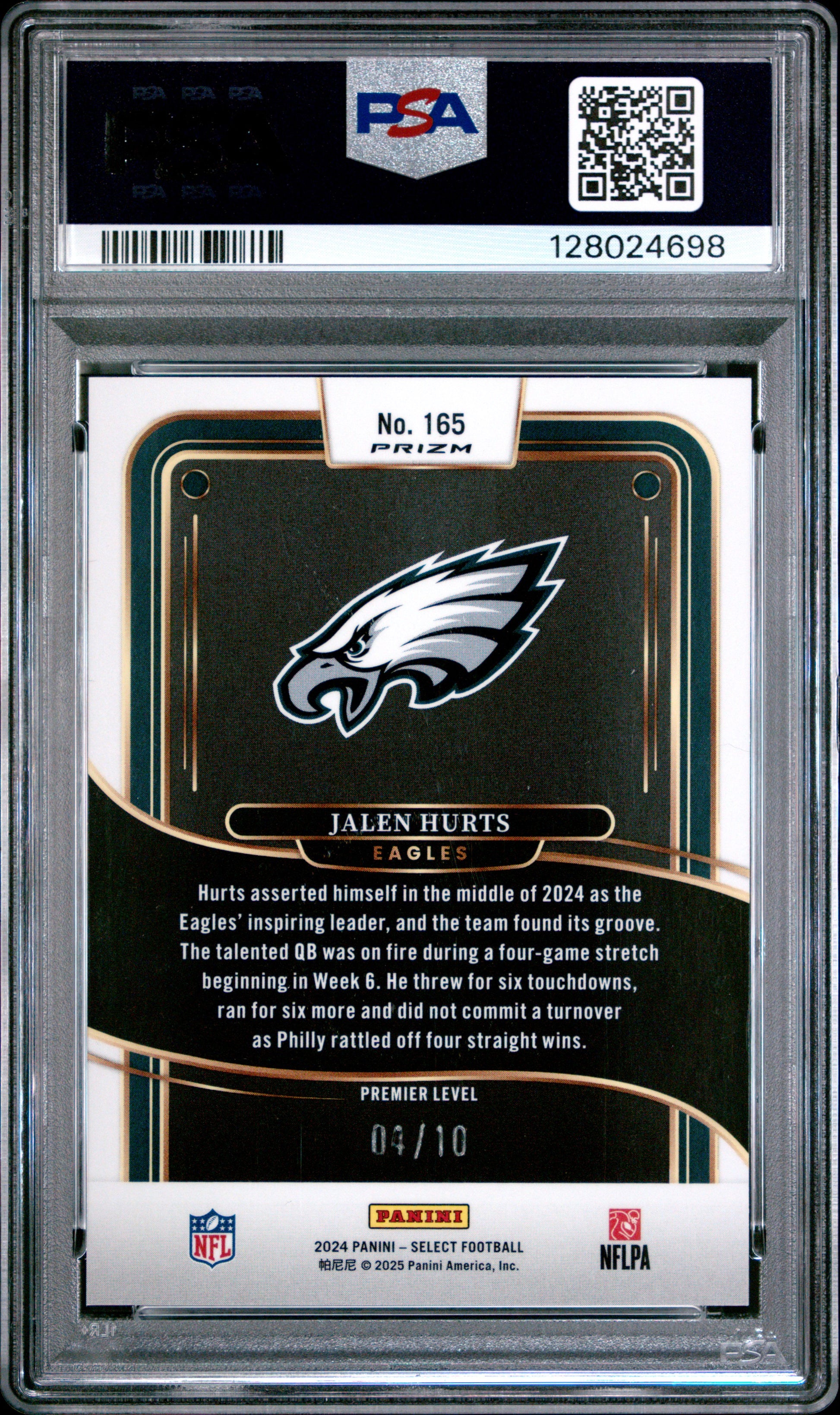 2024 Select Jalen Hurts Gold Disco /10 PSA 10