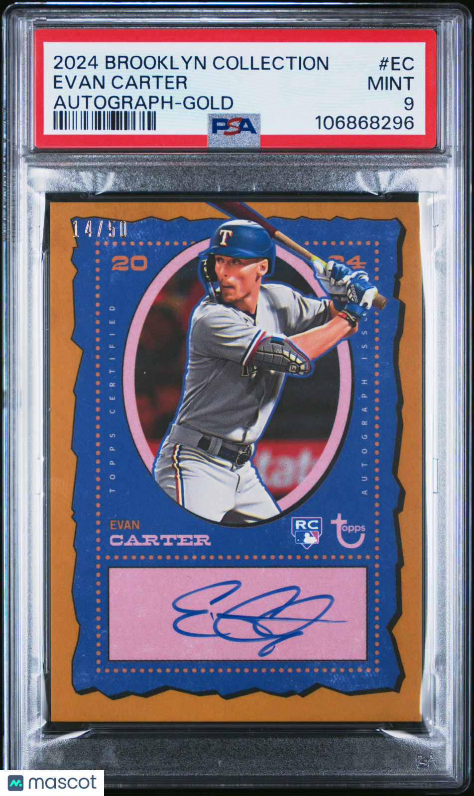 2024 Topps Brooklyn Evan Carter Gold Rookie Auto /50 PSA 9