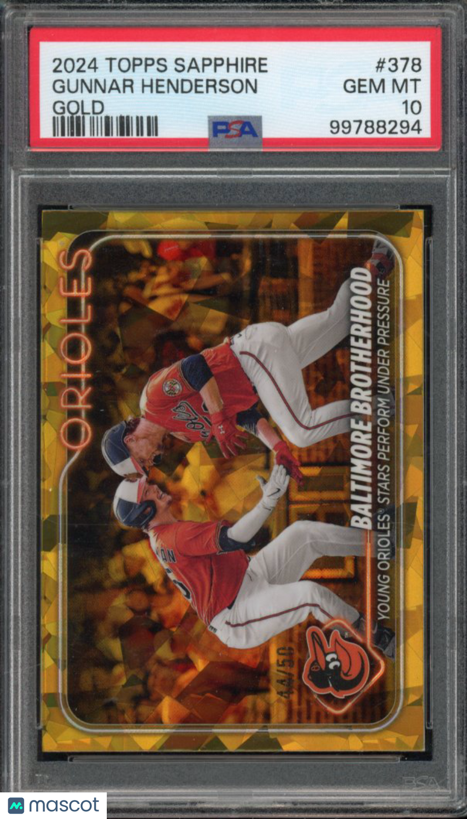 You are purchasing a 2024 Topps Chrome Sapphire Gunnar Henderson #378 Gold PSA. You will receive the exact item in the photographs. Thank you for looking. Listed With Mascot.