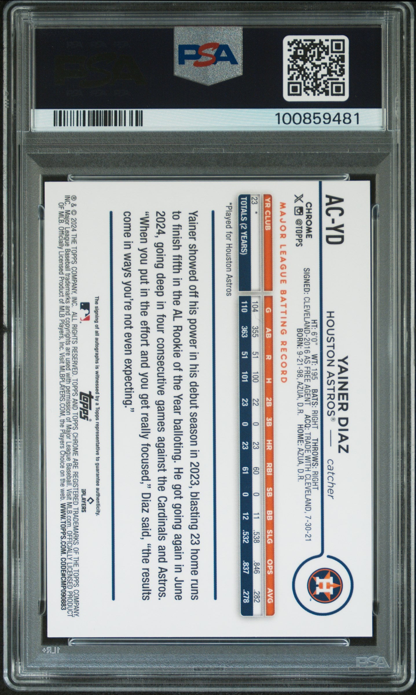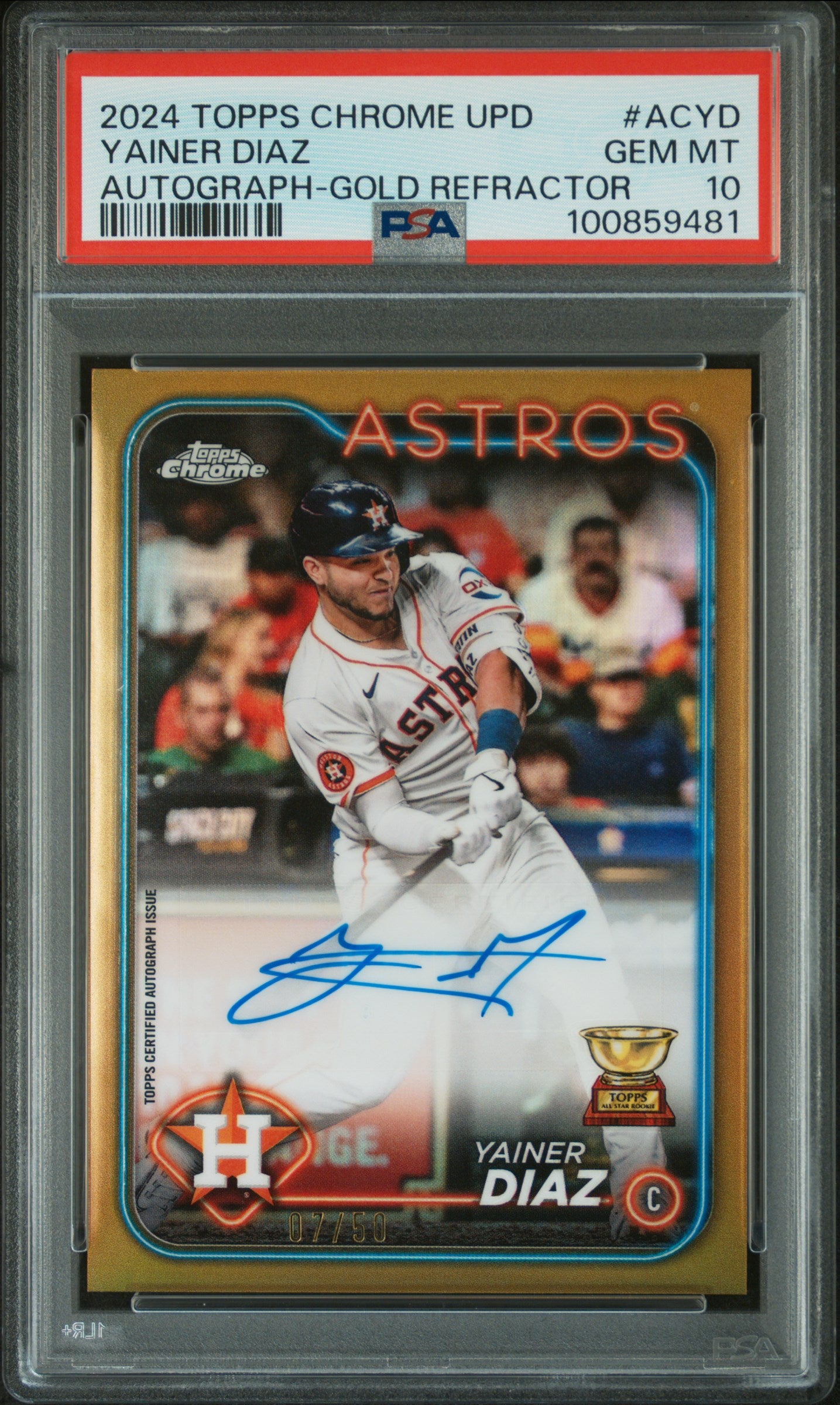 2024 Topps Chrome Yainer Diaz Gold Refractor Auto 07/50 PSA 10