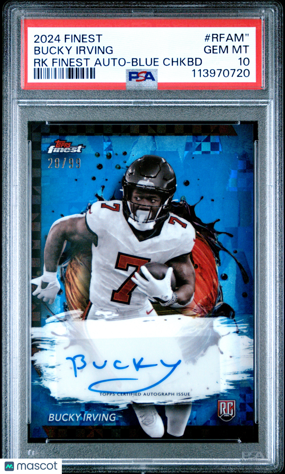 2024 Topps Finest Bucky Irving Blue Rookie Auto /99 PSA 10