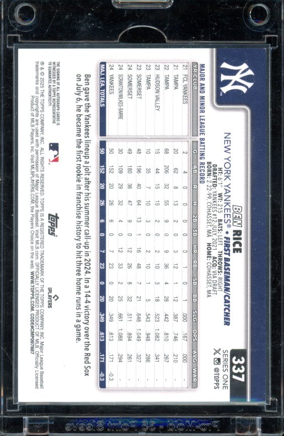 2025 Topps Series One Ben Rice Real One Rookie Auto