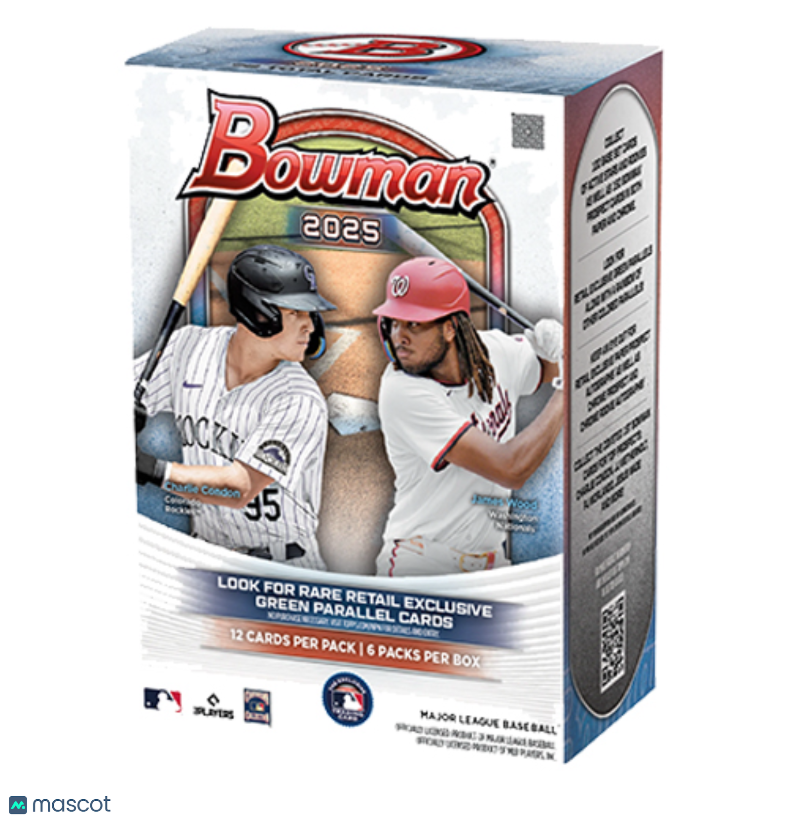 You are purchasing a 2025 Bowman Baseball Blaster Box. You will receive the exact item in the photographs. Thank you for looking. Listed With Mascot.