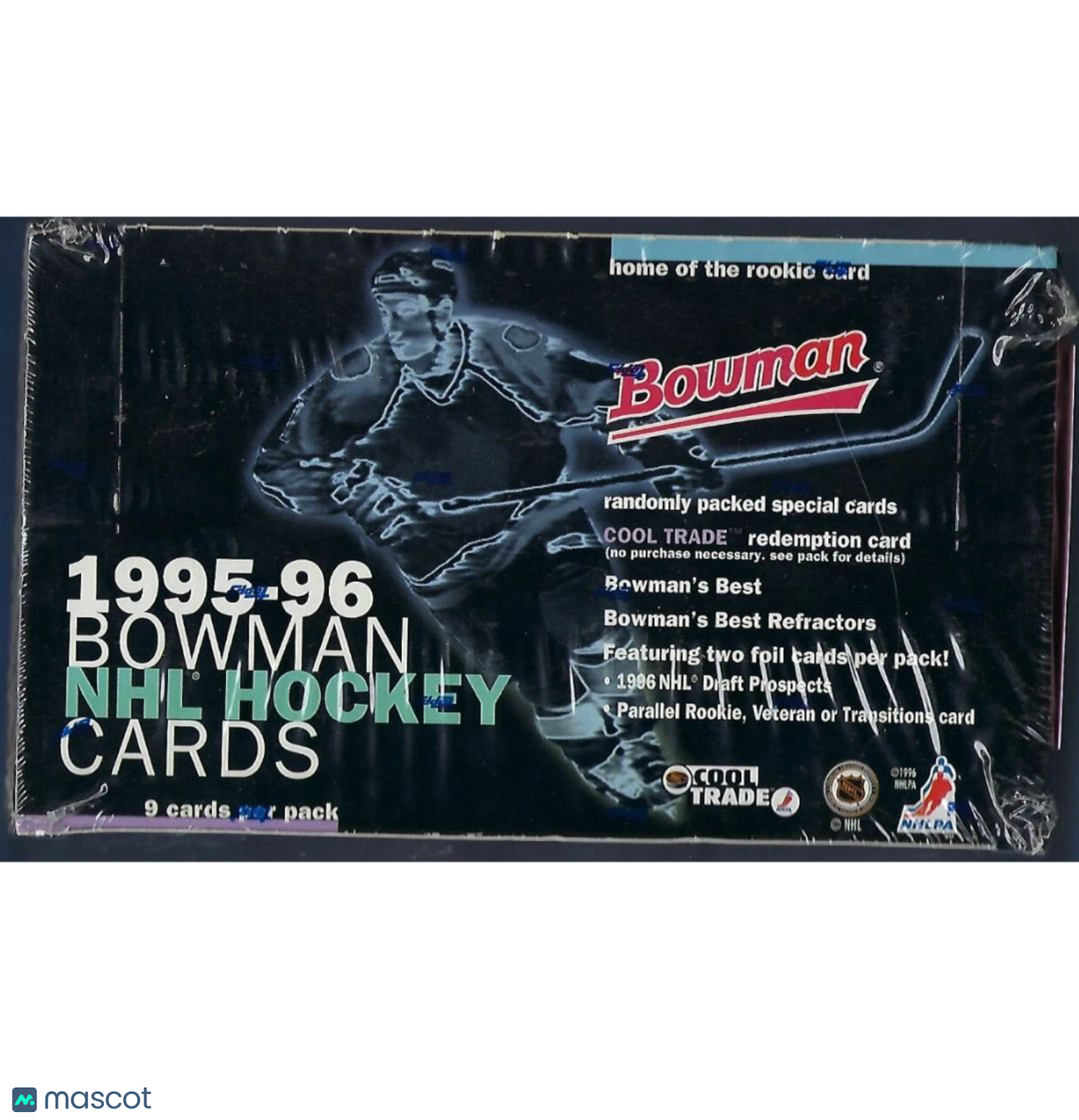 You are purchasing a 1995-96 Bowman Hockey Hobby Box. You will receive the exact item in the photographs. Thank you for looking. Listed With Mascot.