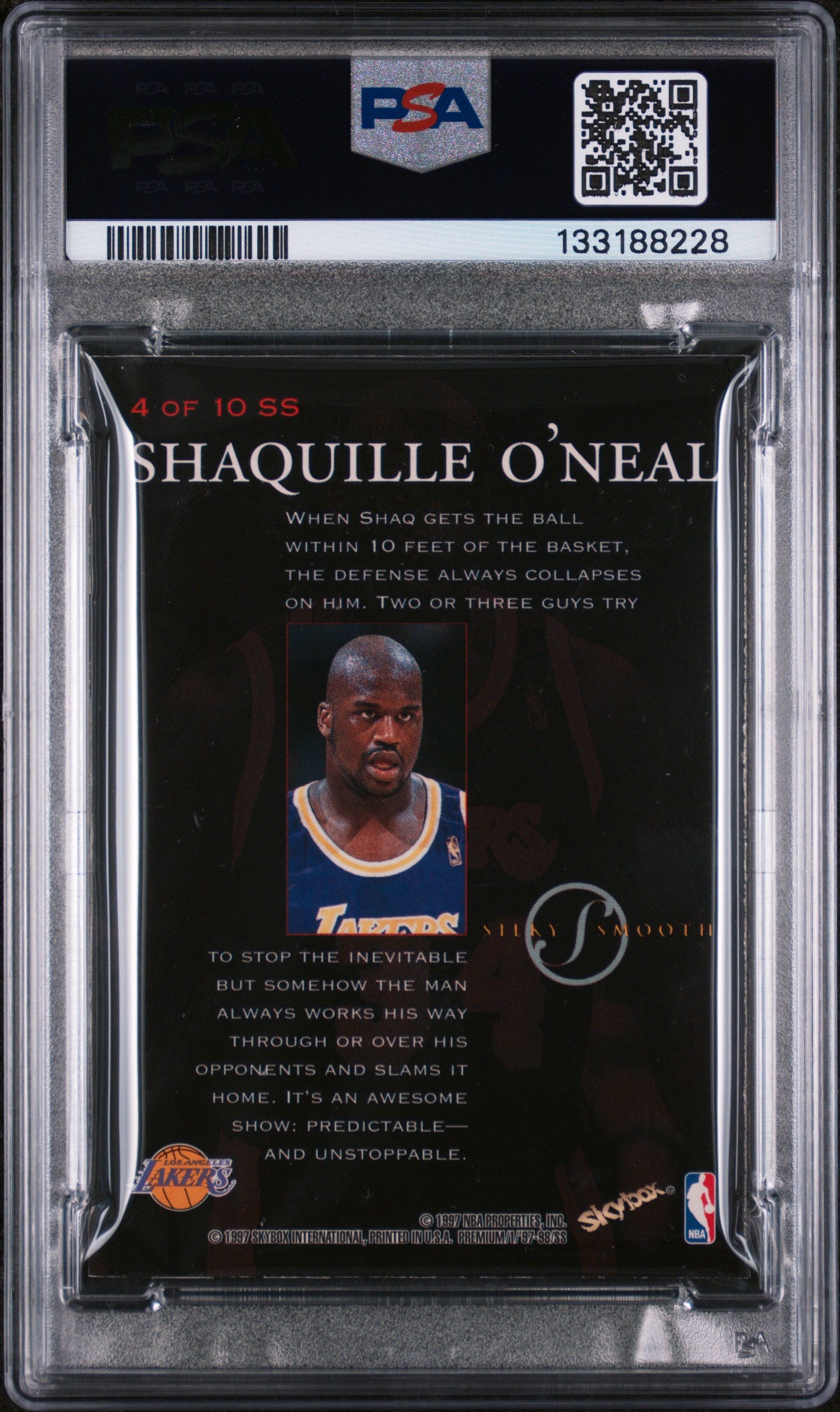 You are purchasing a 1997 Skybox Premium Silky Smooth Shaquille O'Neal #4 PSA. You will receive the exact item in the photographs. Thank you for looking. Listed With Mascot.