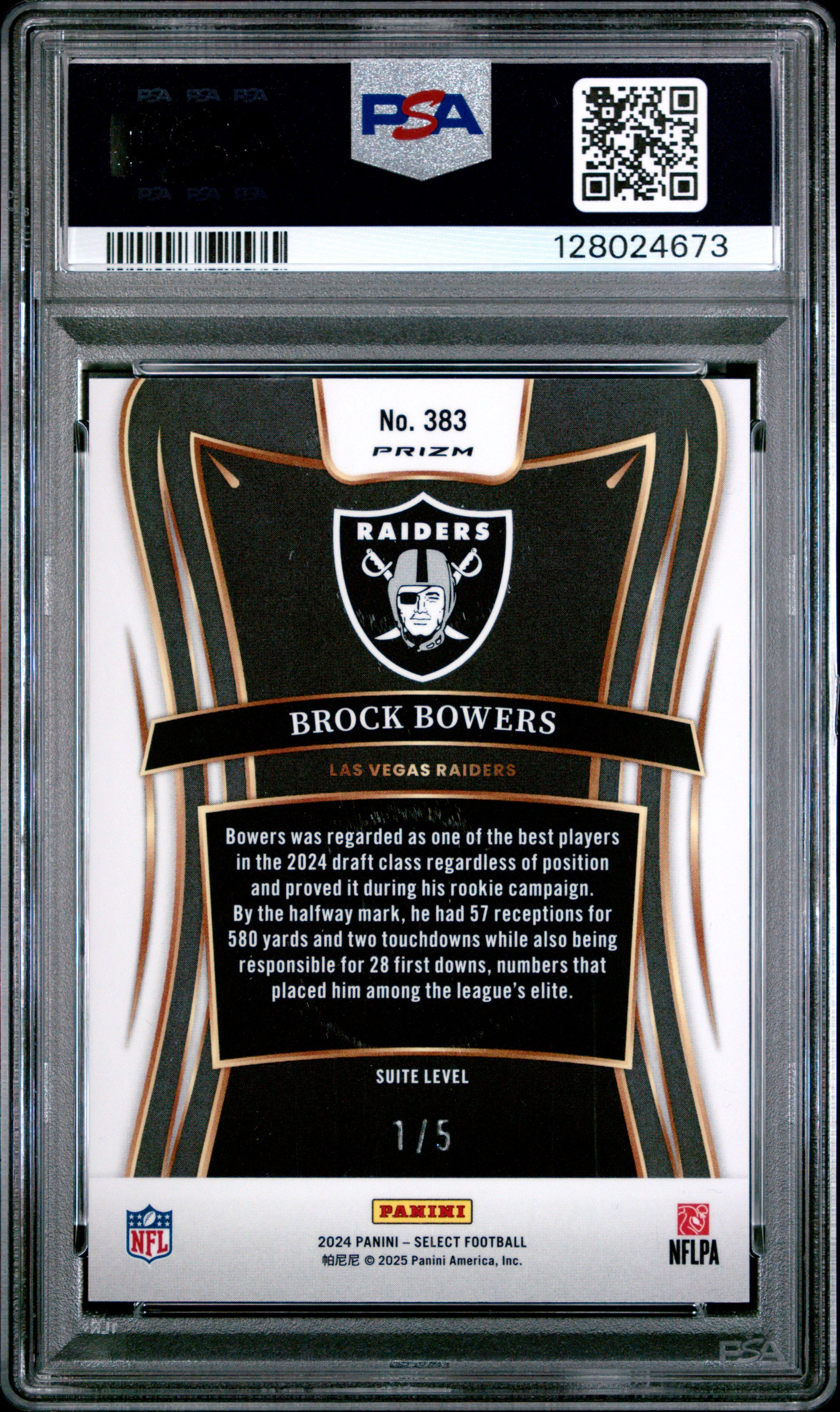 You are purchasing a 2024 Panini Select Brock Bowers #383 Green Prizm PSA. You will receive the exact item in the photographs. Thank you for looking. Listed With Mascot.
